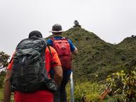 This hike climbs the southeast side of the Moanalua Saddle. You'll enjoy lush jungle, dramatic ridgetops, continuous views and the top of the Haiku Stairs. Climbing the saddle is exciting and dangerous with narrow grassy ledges, long steep scrambles, lots of crumbling rock and big vertical exposure. Go with an experienced guide on your first attempt. You may encounter throngs of people visiting the Stairway to Heaven. Descending heavily eroded Moanalua Middle Ridge can be unpleasant in wet conditions.
